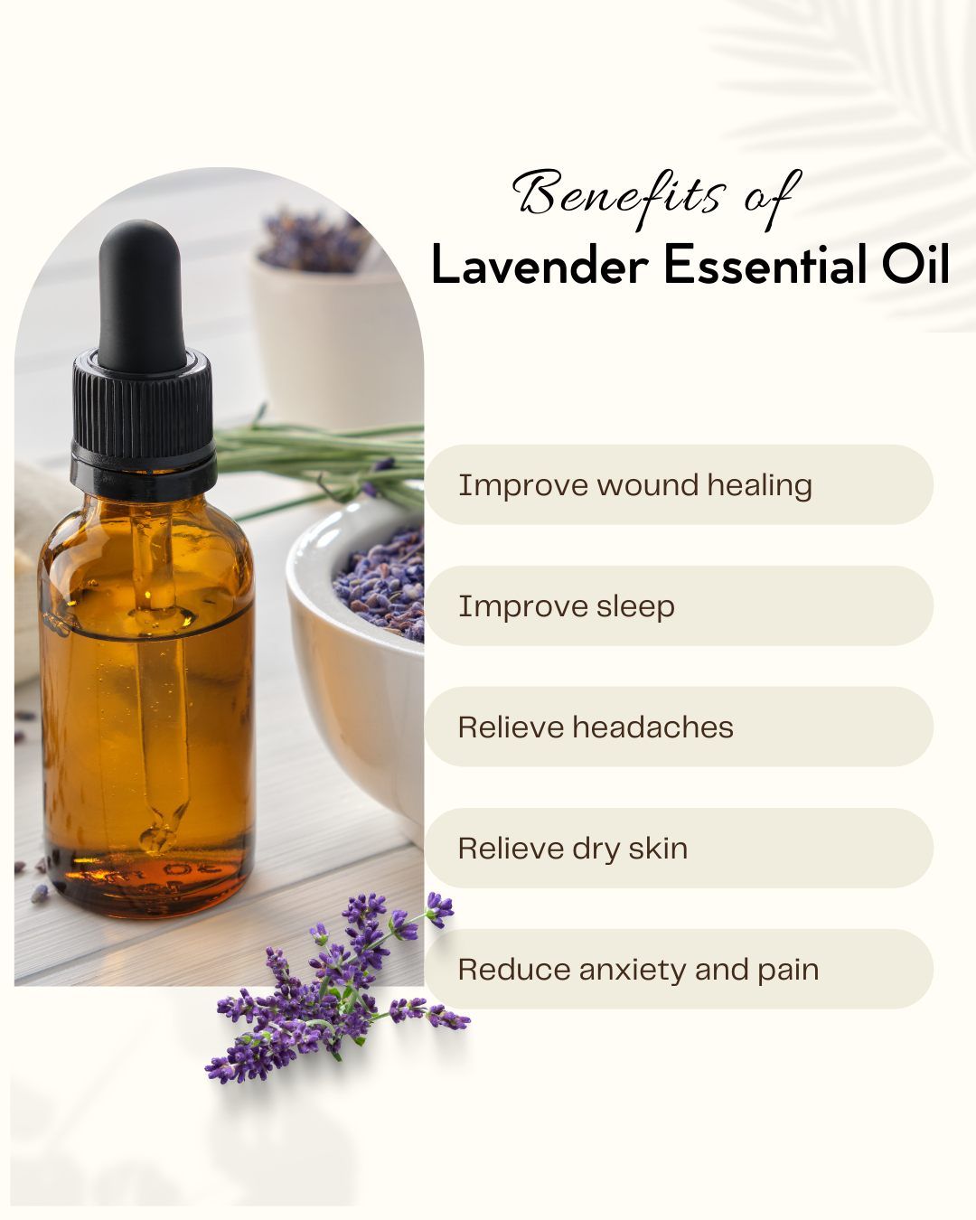A few drops in your diffuser create a calm atmosphere, ease stress, and promote better sleep. When diluted with a carrier oil, lavender oil can help soothe skin irritation, reduce acne, and support scalp health. It also works as a gentle massage oil to relieve tension and relax the body.