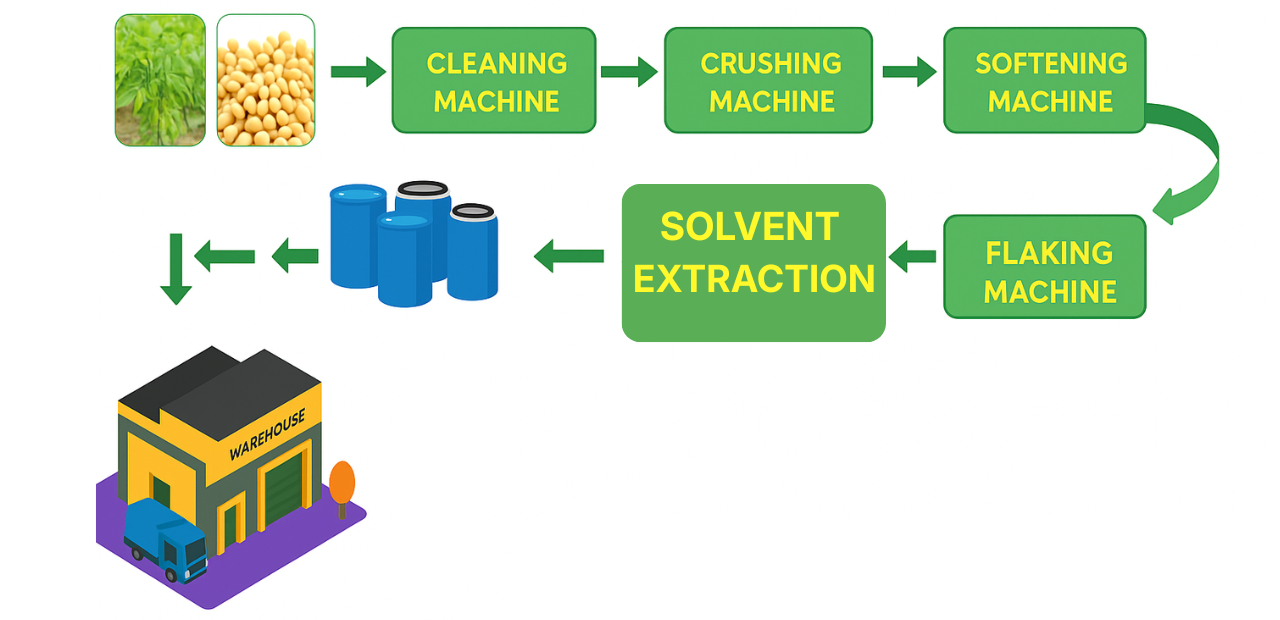 To protect these gentle plants and still get their oils, we use a method called Solvent Extraction. In this method, we use a special liquid called Hexane, which helps pull the oil out safely. This liquid can reach the tiny oil that heat or pressure cannot remove.